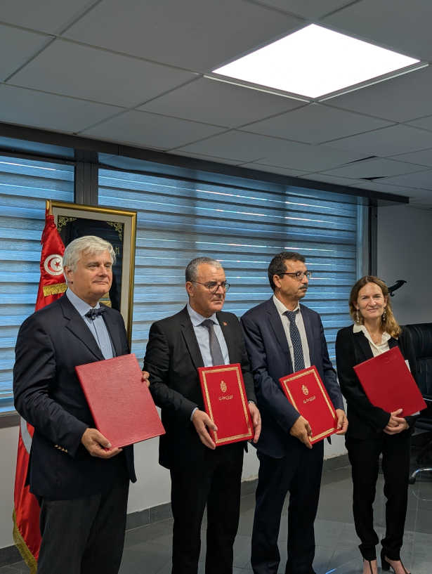 La cérémonie officielle de signature s’est tenue au Ministère de l’Économie et de la Planification, en présence de M. Samir Abdelhafidh, ministre de l’Économie et de la Planification, de M. Abdelhamid Mnajja, PDG de la SONEDE, ainsi que de SE Mme Anne Guéguen, Ambassadrice de France en Tunisie.