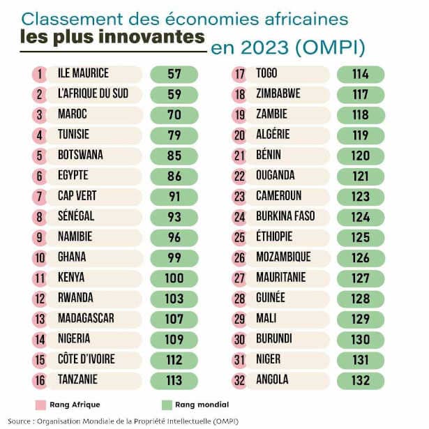 Selon le rapport « Global Innovation Index 2023 : Innovation in the face of uncertainty » de l’Organisation Mondiale de la Propriété Intellectuelle, Maurice demeure l’économie la plus innovante en Afrique en 2023 devant l’Afrique du Sud et le Maroc.