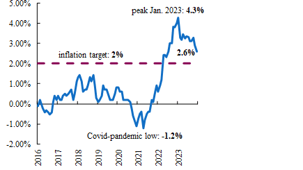 Tout d’abord, la baisse persistante des taux d’inflation a ravivé les craintes que le Japon ne revienne à un scénario durable avec une inflation nettement inférieure à l’objectif. Après avoir atteint le pic de 4,3 % au début de 2023, l’inflation a commencé à chuter fortement à mesure que l’impact de la dépréciation du yen s’est estompé, atteignant 2,6 % dans les dernières données de décembre de l’année dernière.