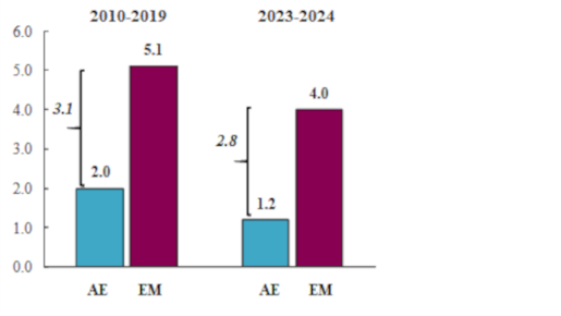 Dans l’ensemble, la croissance économique des pays émergents convergera vers un rythme plus modéré qu’au cours des décennies précédentes, compte tenu du ralentissement de l’économie chinoise, des taux d’intérêt élevés, du resserrement des conditions financières et de l’affaiblissement de la demande extérieure, ce qui oblige les pays émergents à redoubler de réformes pour améliorer leurs performances économiques.