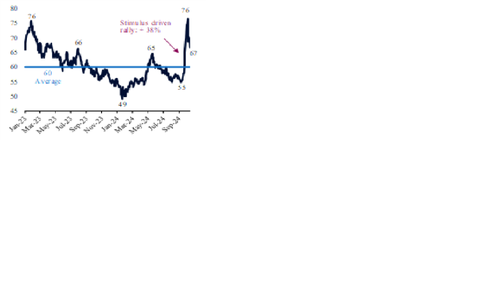 Cette annonce a rapidement ravivé l’appétit pour le risque chez les investisseurs, les spéculateurs et les entrepreneurs. Cela a entraîné une hausse marquée des actifs chinois, les prix des actions ayant bondi de 38 % en l’espace de trois semaines, avant de se stabiliser. Fait important, alors que des inquiétudes émergeaient quant à la capacité de ces mesures à stimuler une croissance plus forte, le gouvernement a précisé qu’il est prêt à déployer d’autres mesures si nécessaire, que ce soit pour soutenir la croissance ou pour maintenir la stabilité financière.