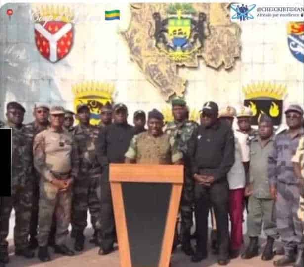 Un groupe d’hommes en tenue militaire se réclamant des forces de défense et sécurité du Gabon et se faisant appeler ‘’Comité pour la transition et la restauration des institutions (CTRI)’’ vient d’annoncer sur la chaîne de télé Gabon 24 sa décision de « mettre fin au régime en place » et la dissolution des institutions de la république, dont « le gouvernement, l’Assemblée nationale, le Sénat, la Cour constitutionnelle, le Conseil gabonais des élections, le Conseil économique, social et environnemental ».