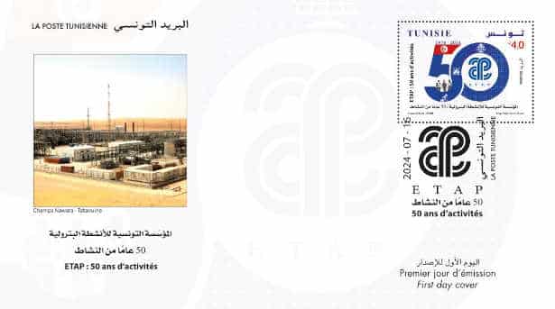 La Poste Tunisienne émet le 16 juillet 2024, un timbre-poste à l’occasion des « 50 ans d’activité de l’Entreprise Tunisienne d’Activités Pétrolières », en reconnaissance de la contribution de cet établissement public historique au développement du secteur pétrolier en Tunisie à travers les opérations d’exploration et de production, l’approvisionnement du marché local en produits pétroliers et en gaz naturel, et l’attraction des investisseurs étrangers dans ce domaine.