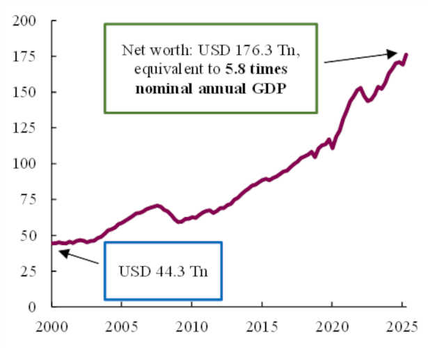 Even as job gains have slowed, the unemployment rate at 4.3% remains in the range of balanced employment, and earnings have steadily grown in real terms, outpacing inflation. This helps to keep aggregate household incomes strong. At the same time, a positive wealth effect from rising stock markets has bolstered spending capacity. Directly and indirectly held equity represents 35% of household net wealth, and 14% year-to-date growth in major indices have a significant impact on wealth, providing a positive effect that bolsters consumption sentiment. Borrowing channels also remain dynamic, with total household credit growing USD 352 Bn in the first two quarters and continuing to support expenditures this quarter. Together, these factors are contributing to maintain household consumption as the key driver of real GDP momentum, accounting for 2/3 of real GDP growth expected for this quarter.
