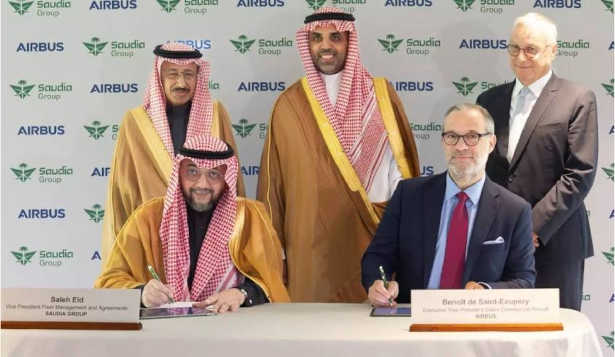 La cérémonie de signature s’est tenue chez Airbus à Toulouse, en présence de Son Excellence Eng. Ibrahim Al-Omar, Directeur Général du Groupe Saudia, et de Christian Scherer, PDG de la division Avions Commerciaux chez Airbus. L’accord a été signé par Saleh Eid, Vice-Président de la Gestion de la Flotte du Groupe Saudia, et Benoît de Saint-Exupéry, Vice-Président Exécutif des Ventes d’Avions Commerciaux d’Airbus.