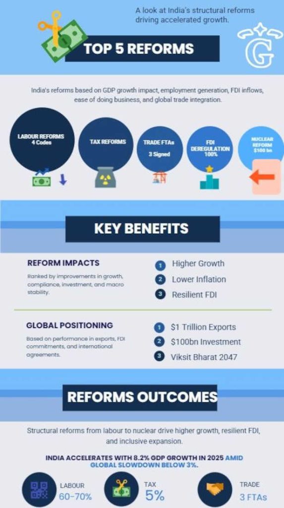 L’Inde progresse rapidement, affichant une croissance du PIB de 8,2 % ! Ce succès n’est pas le fruit du hasard, mais le résultat d’une révolution de réformes globales :