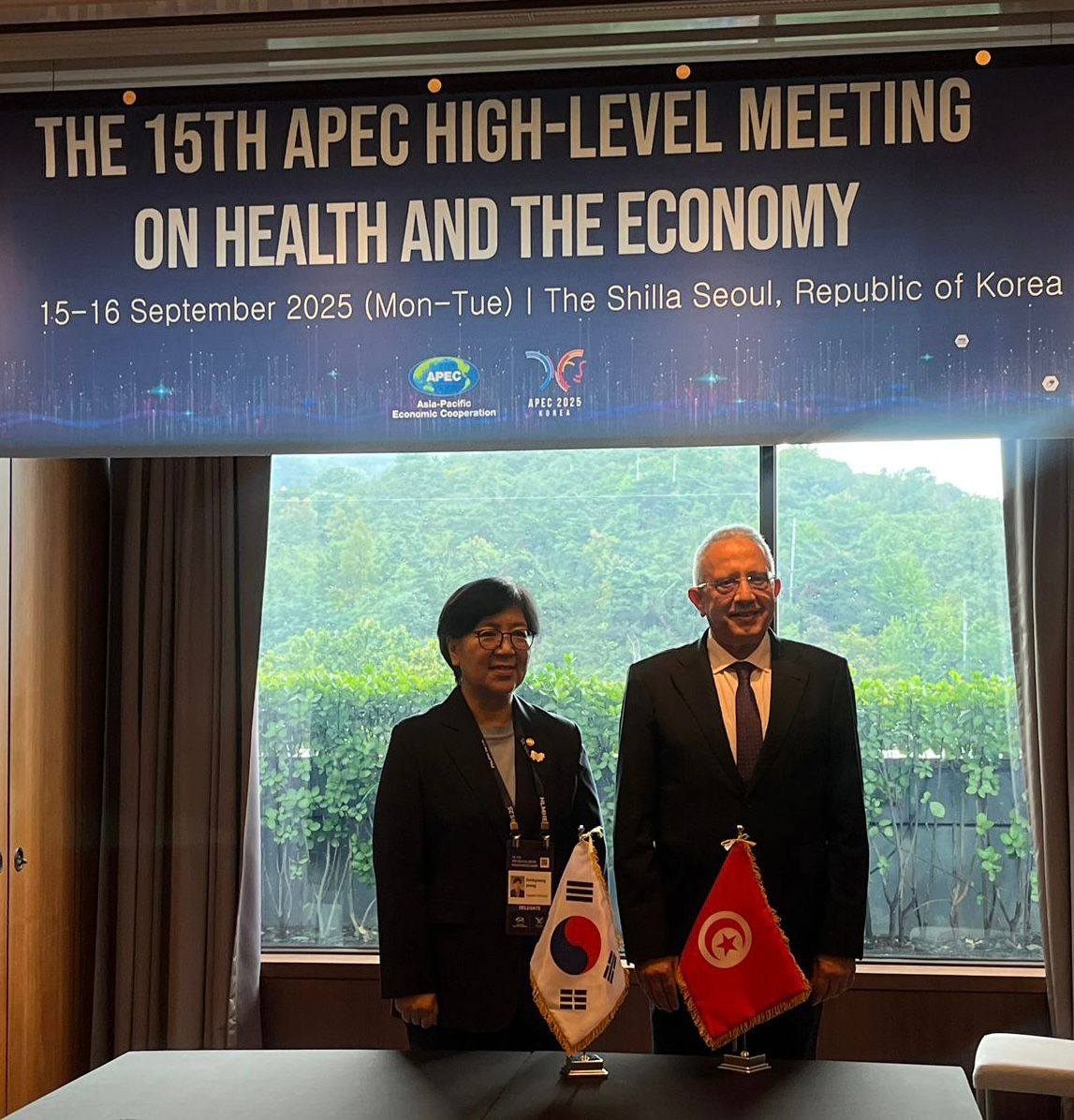 Dans le cadre de sa participation à la quatrième édition du World Bio Summit 2025, qui s’est déroulée le 17 septembre 2025 à Séoul, la capitale de la Corée, le ministre de la Santé, le Dr Moustafa Ferjani, a rencontré aujourd’hui, le 16 septembre 2025, le ministre de la Santé et des Affaires sociales de la République de Corée du Sud, le Dr Jeong Eun-kyeong.
