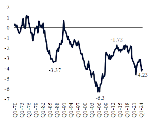 ((Données trimestrielles, en % du PIB, 1970-2024)