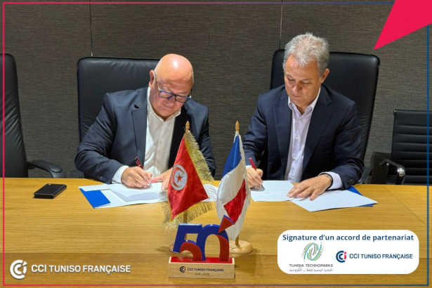 Signé par M. Khelil Chaibi, Président de la CCITF et M. Hichem TURKI, Président de Tunisia Technoparks, cet accord, d’une durée initiale d’un an avec possibilité de renouvellement, marque 𝘂𝗻𝗲 𝗲́𝘁𝗮𝗽𝗲 𝗺𝗮𝗷𝗲𝘂𝗿𝗲 𝗱𝗮𝗻𝘀 𝗹𝗲 𝗿𝗲𝗻𝗳𝗼𝗿𝗰𝗲𝗺𝗲𝗻𝘁 𝗱𝗲 𝗹’𝗲́𝗰𝗼𝘀𝘆𝘀𝘁𝗲̀𝗺𝗲 𝗲𝗻𝘁𝗿𝗲𝗽𝗿𝗲𝗻𝗲𝘂𝗿𝗶𝗮𝗹 𝘁𝘂𝗻𝗶𝘀𝗶𝗲𝗻 𝗲𝘁 𝗱𝗮𝗻𝘀 𝗹𝗮 𝘃𝗮𝗹𝗼𝗿𝗶𝘀𝗮𝘁𝗶𝗼𝗻 𝗱𝗲𝘀 𝗲́𝗰𝗵𝗮𝗻𝗴𝗲𝘀 entre la Tunisie et la France dans les domaines technologiques.