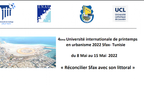 Dans le cadre de la programmation de « Tunisie en Mouvements » soutenue par Wallonie-Bruxelles International, l’Ecole Nationale d’Architecture et d’Urbanisme (ENAU) organise en partenariat avec la municipalité de Sfax, une université de printemps internationale. Cette manifestation impliquera aussi l’Université Catholique de Louvain (UCL) en Belgique.