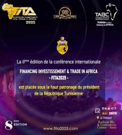 Dans un communiqué diffusé le lundi 21 janvier 2025, Le Tunisia Africa Business Council (TABC) a annoncé que, pour la quatrième année consécutive, la conférence internationale « Financing Investment & Trade in Africa (FITA2025) » se tiendra sous le haut patronage de Son Excellence le Président de la République Tunisienne, Kais Saied.