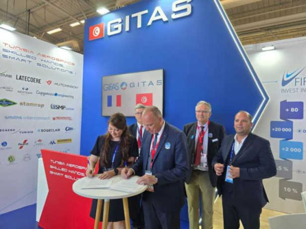 En marge du Salon International de l’Aéronautique et de l’Espace «Le Bourget», qui s’est déroulé du 16 au 22 juin dernier à Paris, le Groupement des Industries Tunisiennes Aéronautiques et Spatiales (GITAS) ainsi que le Groupement des Industries Françaises Aéronautiques et Spatiales (GIFAS) ont signé un mémorandum d’entente (MoU) stratégique dans le domaine aéronautique, a annoncé le 24 juin 2025, la Chambre de Commerce et d’Industrie tuniso-française (CCITF).