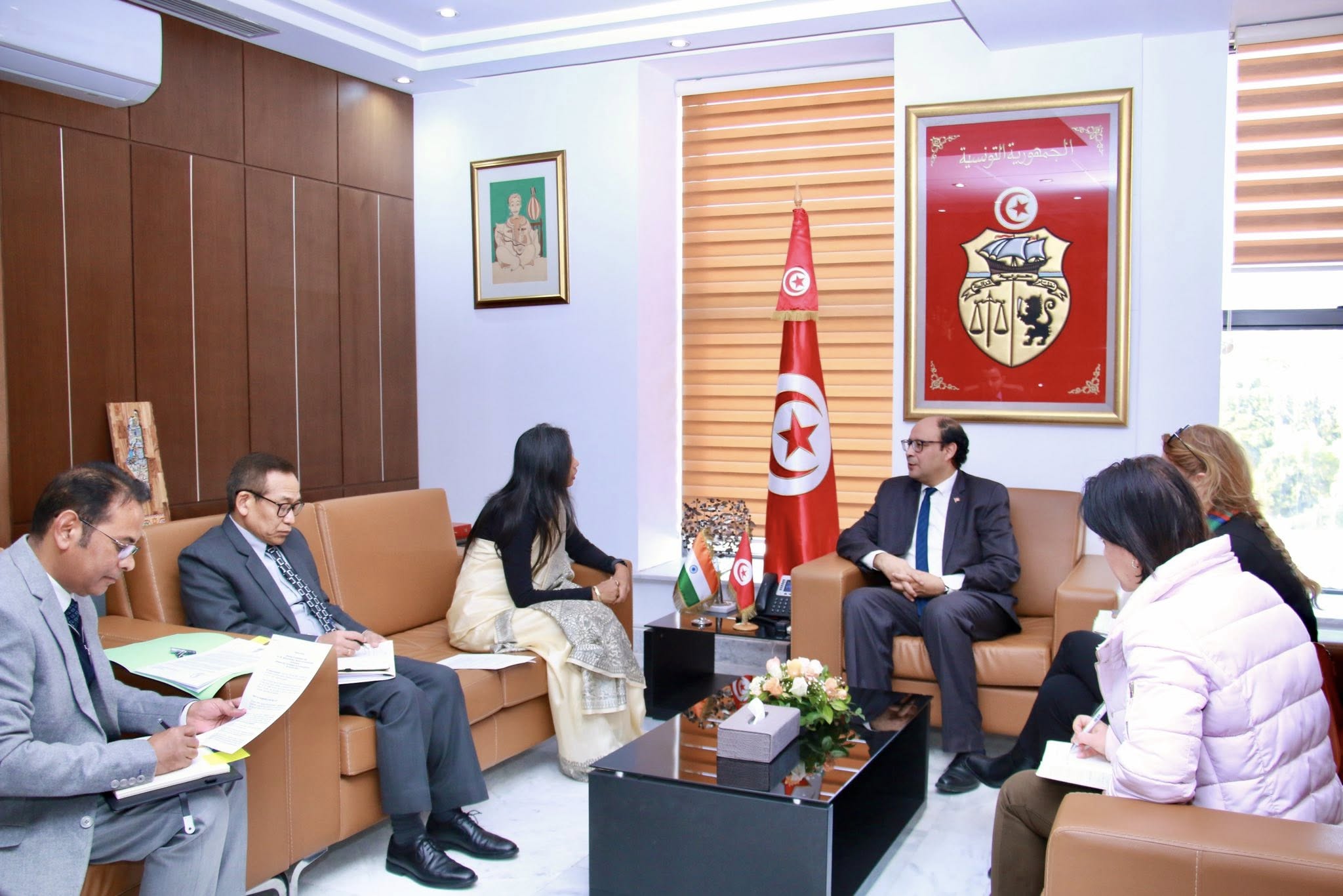 Le ministre des technologies de la communication, M. Sufyan al-Himaisi, a reçu vendredi matin, le 30 janvier 2026, au siège du ministère, l’ambassadeur d’Inde en Tunisie, Dr. Devyani Uttam Kabragad.