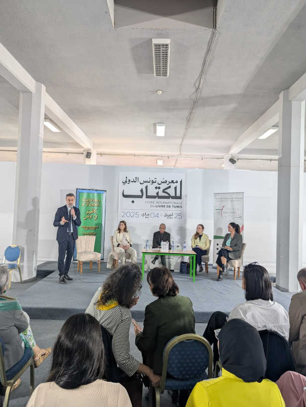 Cet opus de 124 pages, édité chez Mesogea, est composé de textes d’auteurs et illustrations d’artistes issus de divers univers, entre Bande dessinée et Arts plastiques. Ce livre a fait l’objet d’une rencontre, lundi, au parc des expositions du Kram, dans le cadre de la 39ème Foire internationale du livre de Tunis (25 avril-4mai 2025), en présence du directeur de l’IIC Fabio Ruggirello, l’écrivaine Amira Ghenim, l’artiste Sonia Bensalem, l’Italianiste Mario Sei (expert en Littérature italienne contemporaine) et Chiara Comito ayant dirigé les rencontres de 2024.