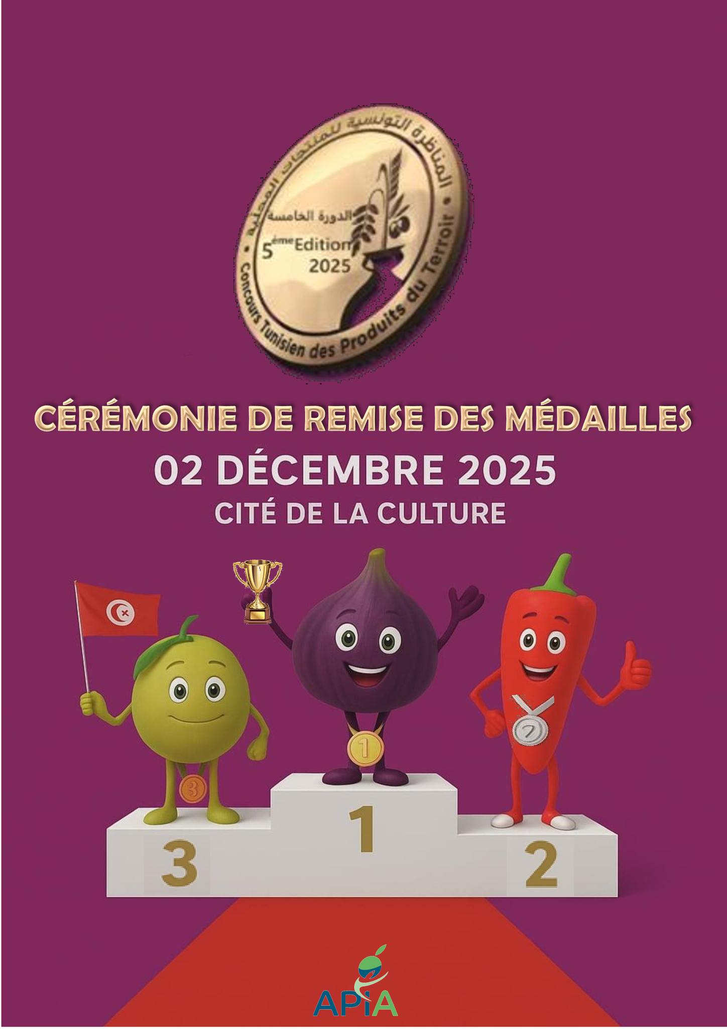 Organisé par l’Agence de promotion des investissements agricoles (APIA), la 5e édition du Concours tunisien des produits du terroir aura lieu le mardi 02.12.2025 à la Cité de la culture de Tunis .