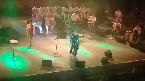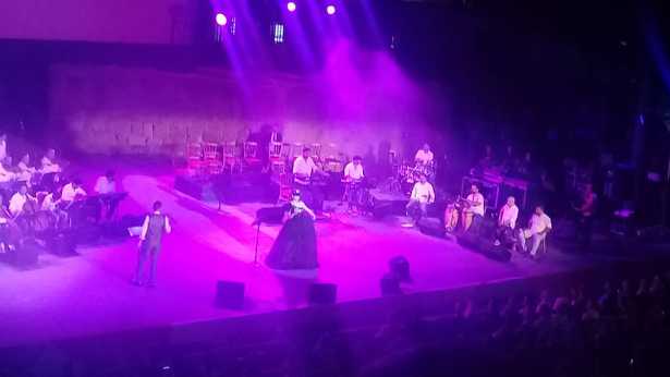 Et dans la deuxième partie du spectacle , la diva Amina Fakhet est apparue sur scène et a commencé son show par sa fameuse chanson « mawedna ardak ya baladna ».