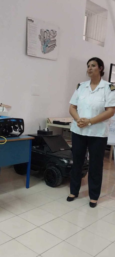 La délégation des journalistes a eu l’opportunité de visiter les salles d’enseignement de l’académie, les laboratoires, le simulateur de navigation présenté par le colonel Hamadi Bouaicha, et la salle de préparation des projets de fin d’études , deux types de projets ont été présentés : un détecteur d’objets flottants et un robot sous-marin.