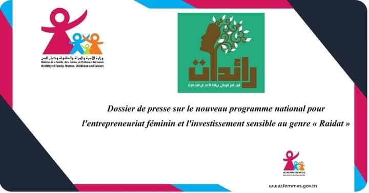 Le nouveau programme national d’entrepreneuriat féminin et d’investissement sensible au genre « Raidat », mis en œuvre par le ministère de la Famille, de la Femme, de l’Enfance et des Personnes âgées, a été lancé le 8 mars 2022, à l’occasion de la célébration de la Journée internationale de la femme.