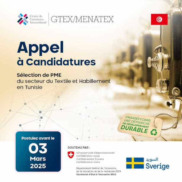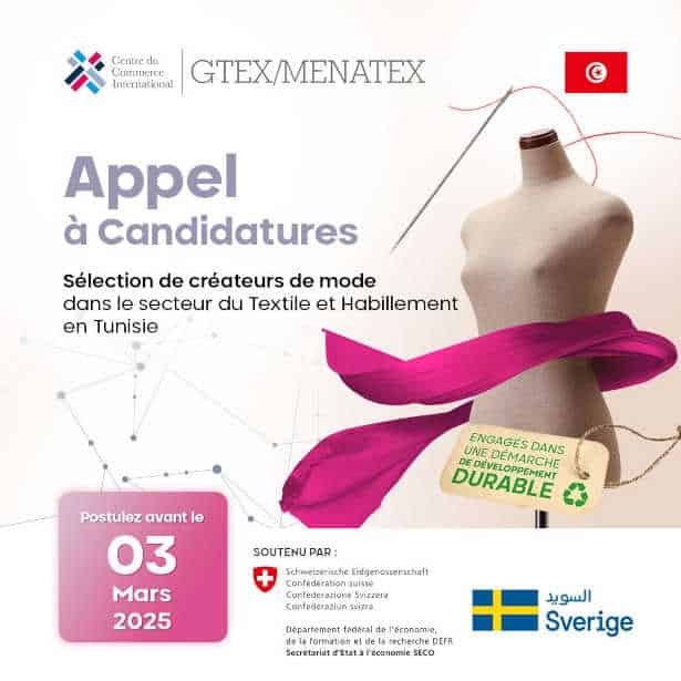Le Projet GTEX/MENATEX Tunisie, lance deux appels à candidatures pour la sélection d’un nouveau groupe de bénéficiaires parmi les PMEs et de CRÉATEURS DE MODE du secteur Textile et Habillement en Tunisie.