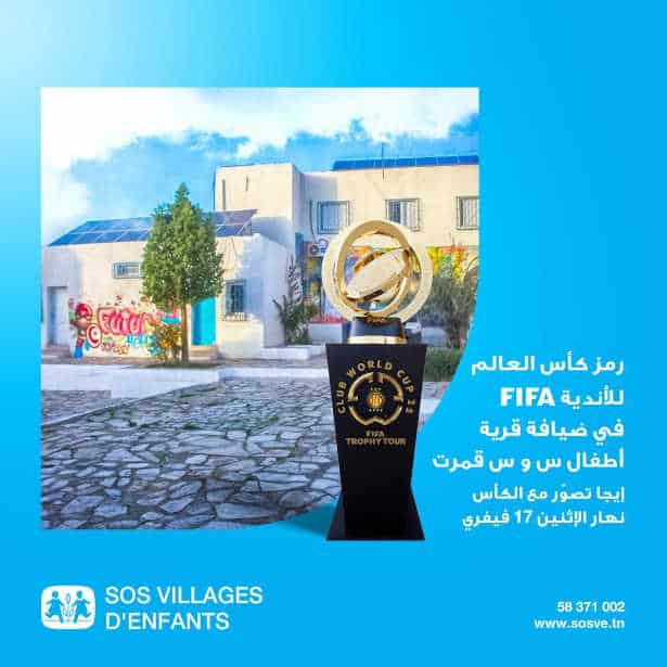 Les enfants du village SOS Gammarth recevront l’emblème de la Coupe du Monde des Clubs de la FIFA grâce à l’initiative de l’équipe de l’Espérance sportive de Tunis, 1er du championnat « Ligue 1 tunisienne » , ce lundi 17 février 2025, ce geste humanitaire met en avant l’esprit de solidarité sportive et communautaire. Cette visite vise à apporter de la joie aux enfants, à renforcer les liens entre l’équipe et l’Association Tunisienne des villages d’enfants, tout en créant une atmosphère d’enthousiasme pour admirer le symbole de la Coupe du Monde des Clubs de la FIFA.