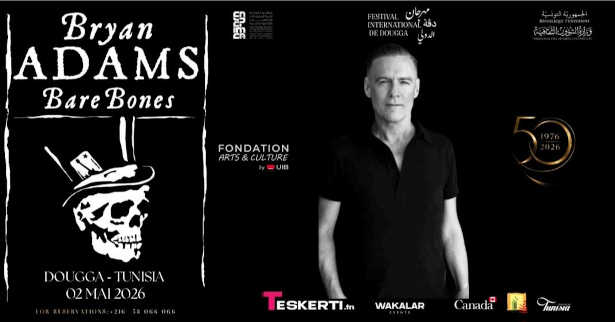 L’icône du rock canadien Bryan Adams débarque pour la première fois au Festival international de Dougga pour un concert inédit, le samedi 2 mai 2026, au Théâtre Antique de Dougga.