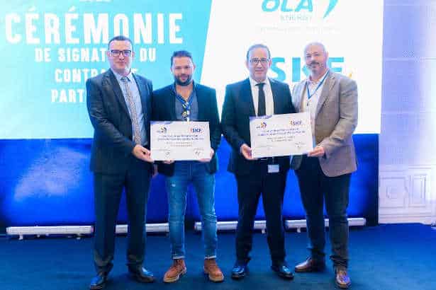 La cérémonie de signature de cette convention a eu lieu à Hammamet en présence des premiers responsables et hauts cadres des deux groupes, à leurs têtes M. Abdulhak Mohamed EL KHABLASHI, Directeur Général d’OLA Energy Tunisie et M. Ahmed HAMZA, Directeur Commercial B2B et les dirigeants de SKF (Groupe Kacem & Fils) M. Wissem KACEM et M. Wael KACEM.