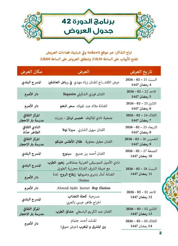 Le vendredi 13 février 2026, le Club Culturel Taher El Haddad a accueilli une conférence de presse pour présenter le programme de la 42ème édition du festival de la Médina, en présence du président de l’Association du festival, Chadli Ben younes, des membres de l’équipe organisatrice, ainsi que du représentant régional de la culture en Tunisie.