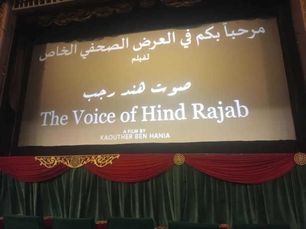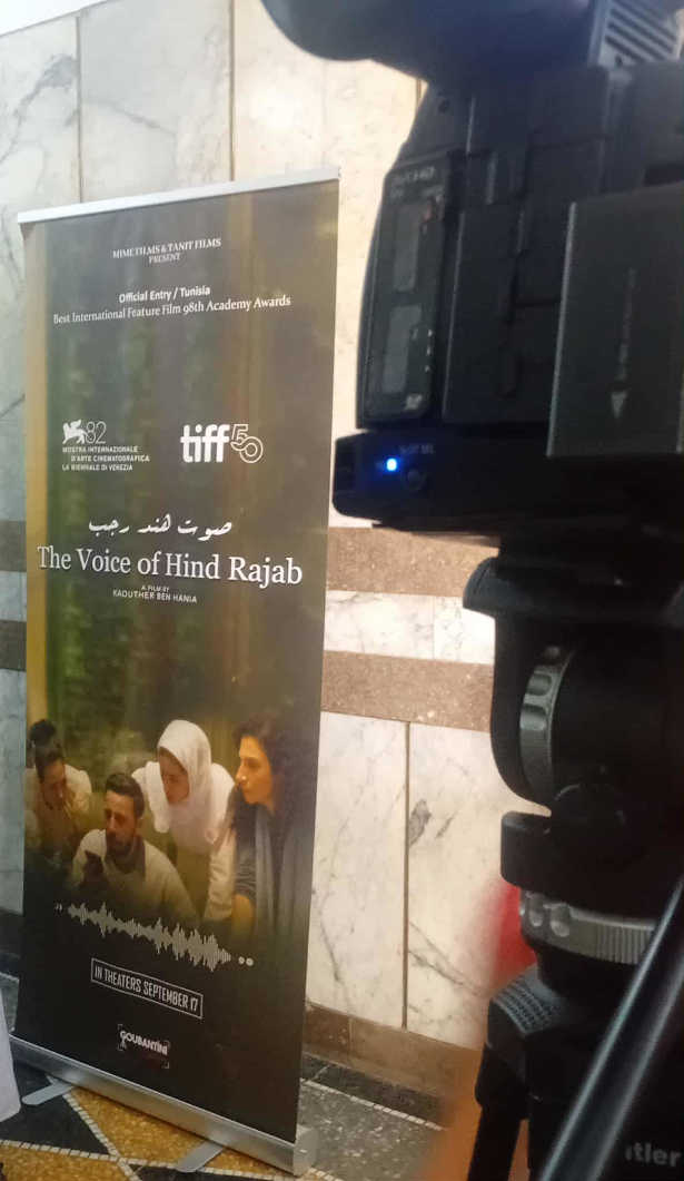 La Voix de Hind Rajab (Ṣawt Hind Rajab) est un drame de guerre franco-tunisien réalisé par Kaouther Ben Hania et sorti en 2025. Une projection presse a eu lieu le vendredi 12 septembre 2025, à la salle de Colisée de Tunis, en présence de l’équipe technique du film. Étant donné que Ben Hania travaille actuellement sur un nouveau projet en France, elle n’a pas pu assister à la projection.