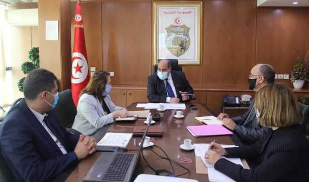 Le Ministre par intérim de l’industrie, de l’énergie et des mines, M. Mohamed Bousaid, a rencontré le président directeur général de la société Tunisienne de Sidérurgie « El Fouladh », M. Mounir Makhlouf, en présence du directeur général des industries de laboratoire, M. Fathi Sahlaoui, et la directrice générale de la supervision des installations Mme Fatima Chiboub, ce lundi matin 1er mars 2021, au siège du ministère.