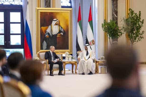 Au cours de la réunion, qui s’est déroulée au Qasr Al Watan à Abou Dhabi, Son Altesse a souhaité la bienvenue au président russe aux EAU et a salué son importante contribution au développement des relations entre les EAU et la Russie à différents niveaux. Le président Poutine a félicité Son Altesse à l’occasion de la 52ème journée de l’Union, exprimant ses vœux de progrès et de prospérité aux EAU.